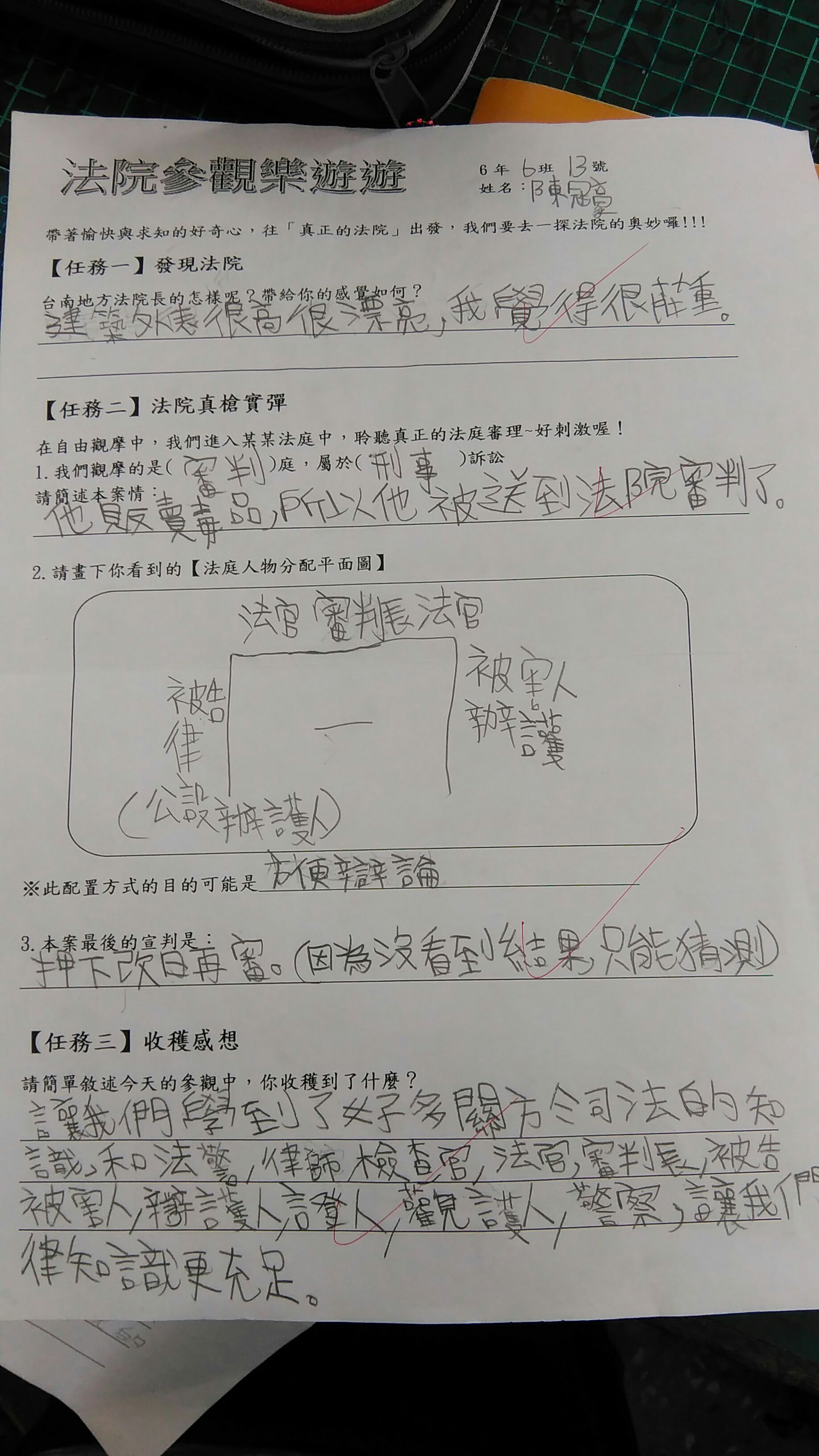 投稿題目:參觀法院