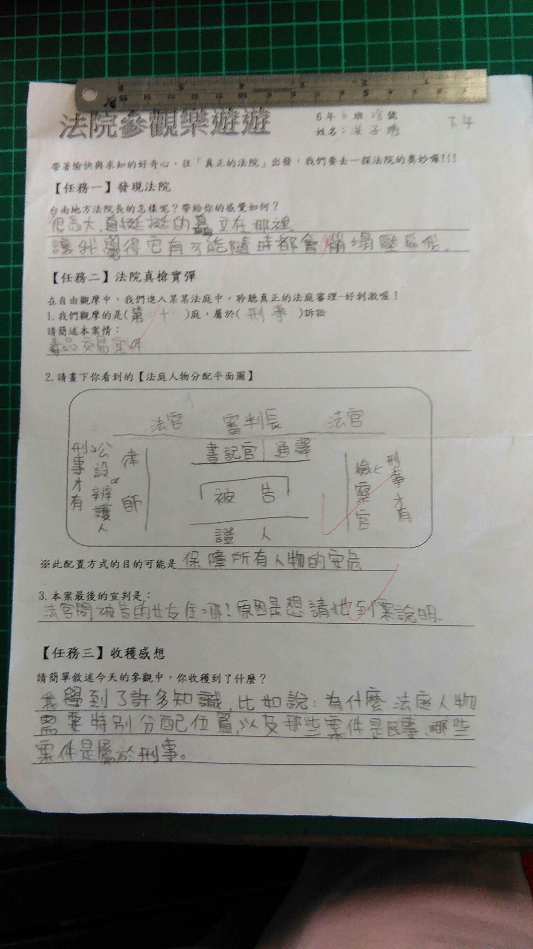投稿題目:參觀法院