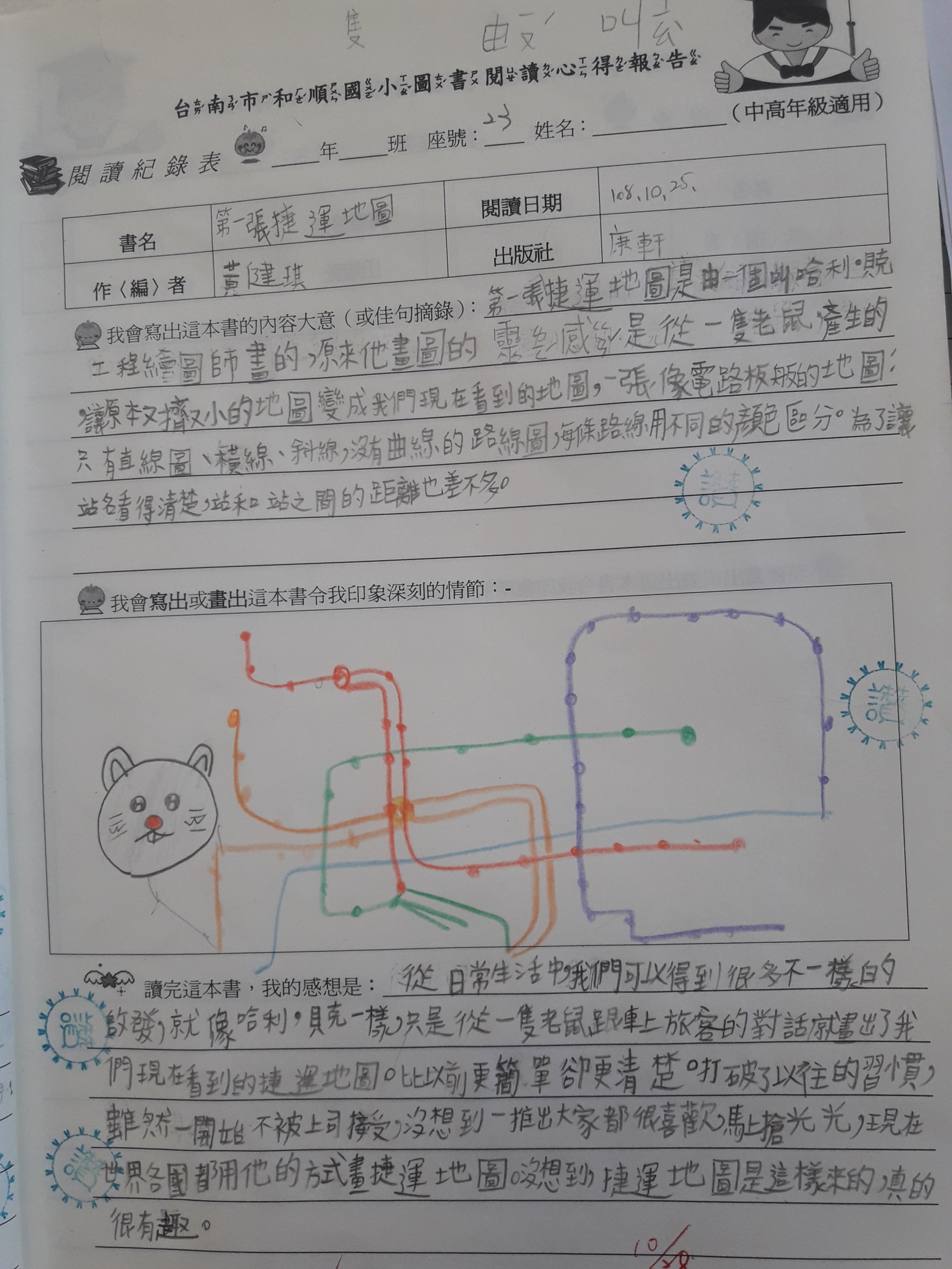 投稿題目:「第一張捷運地圖」讀後心得