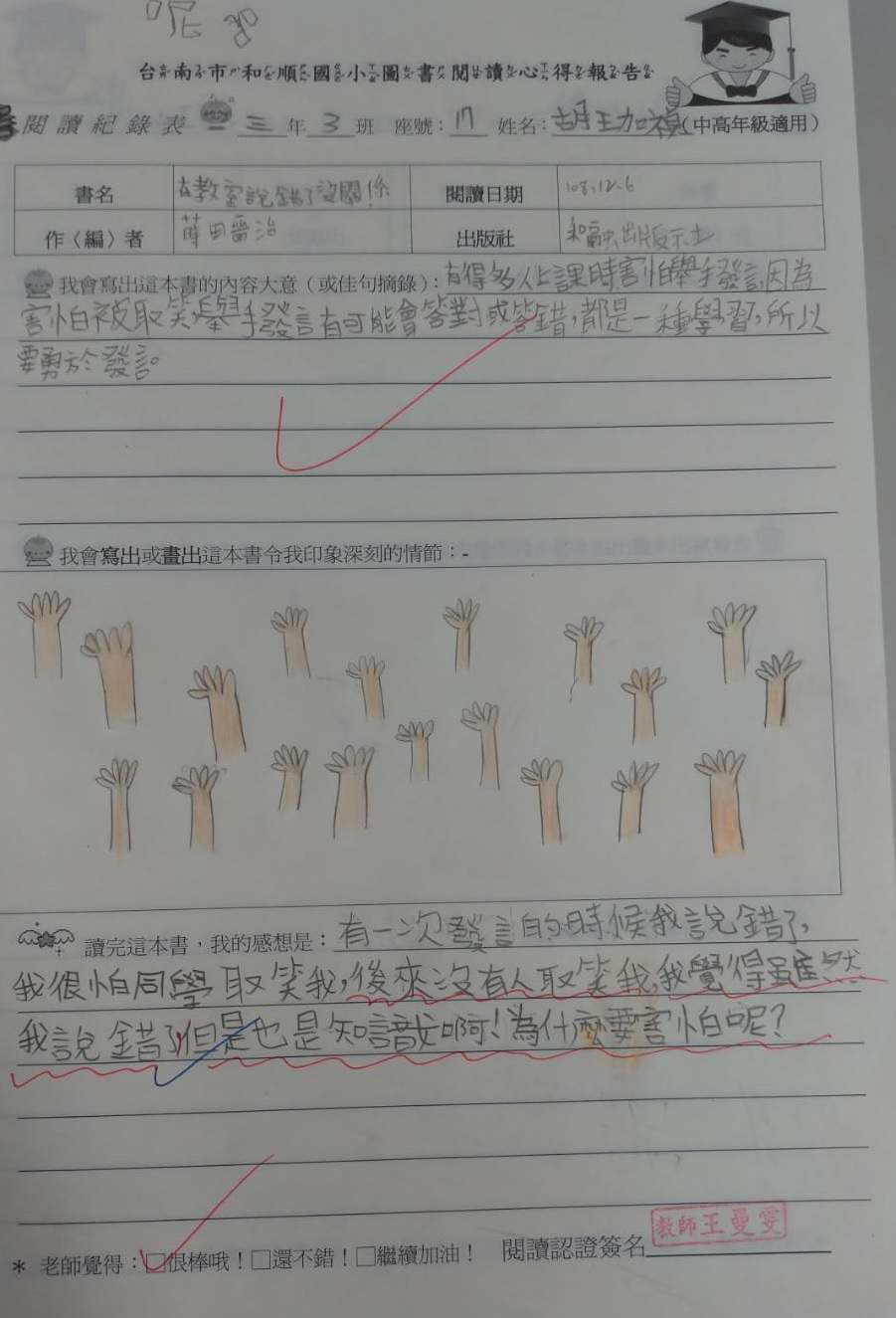 投稿題目:「在教室說錯了沒關係」閱讀心得