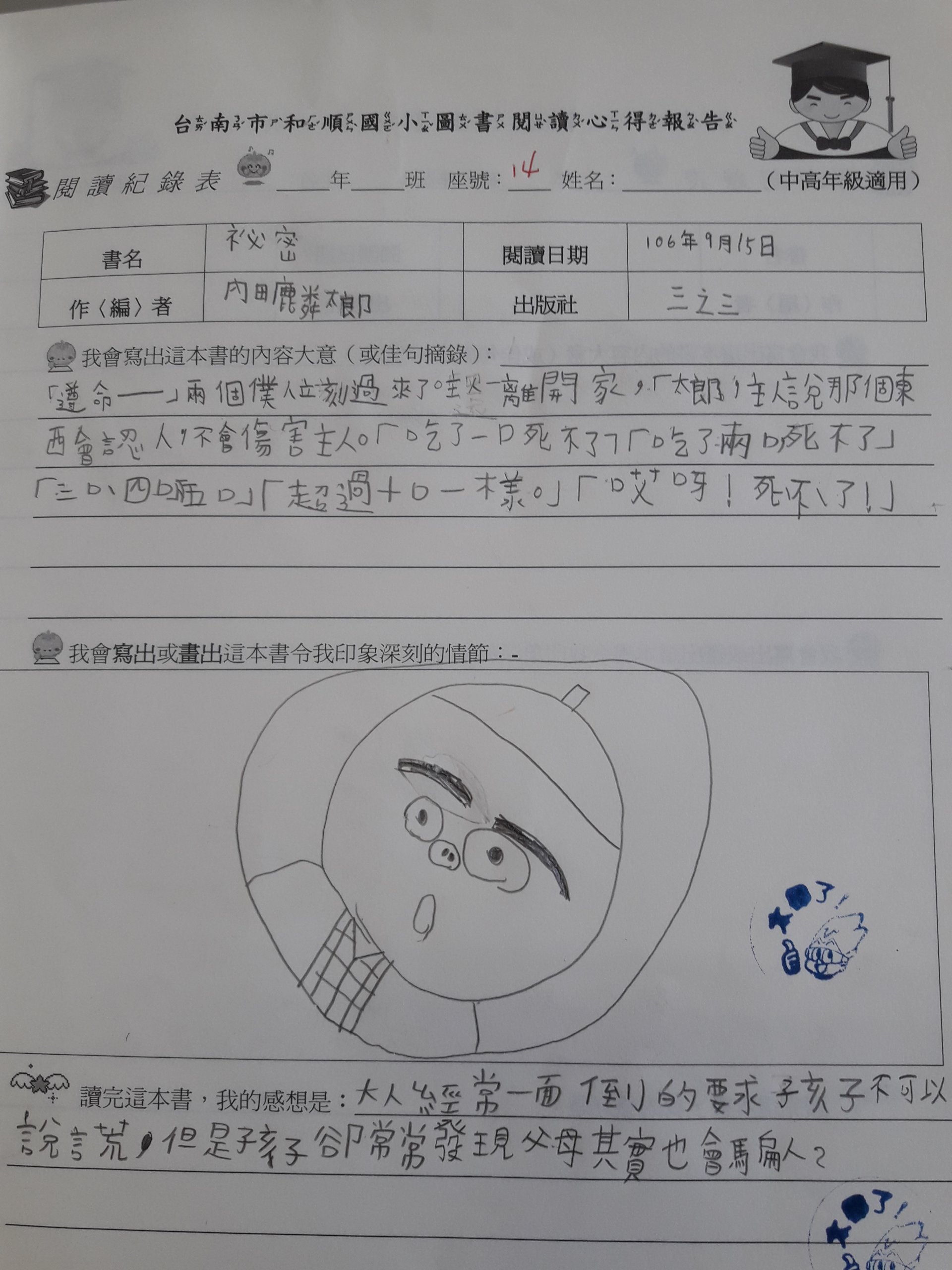 投稿題目:「祕密」讀後心得