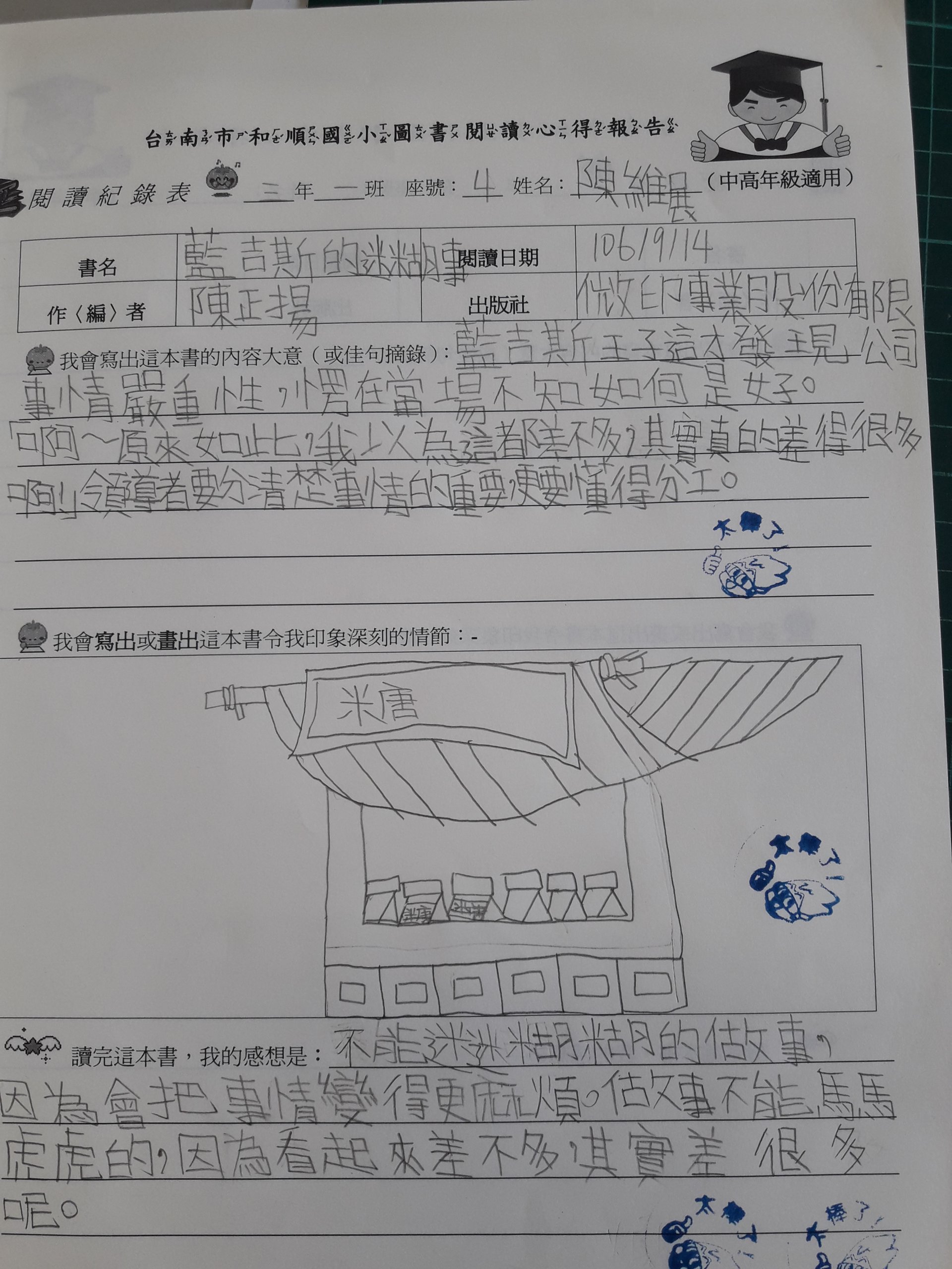 投稿題目:「藍吉斯的迷糊事」讀後心得