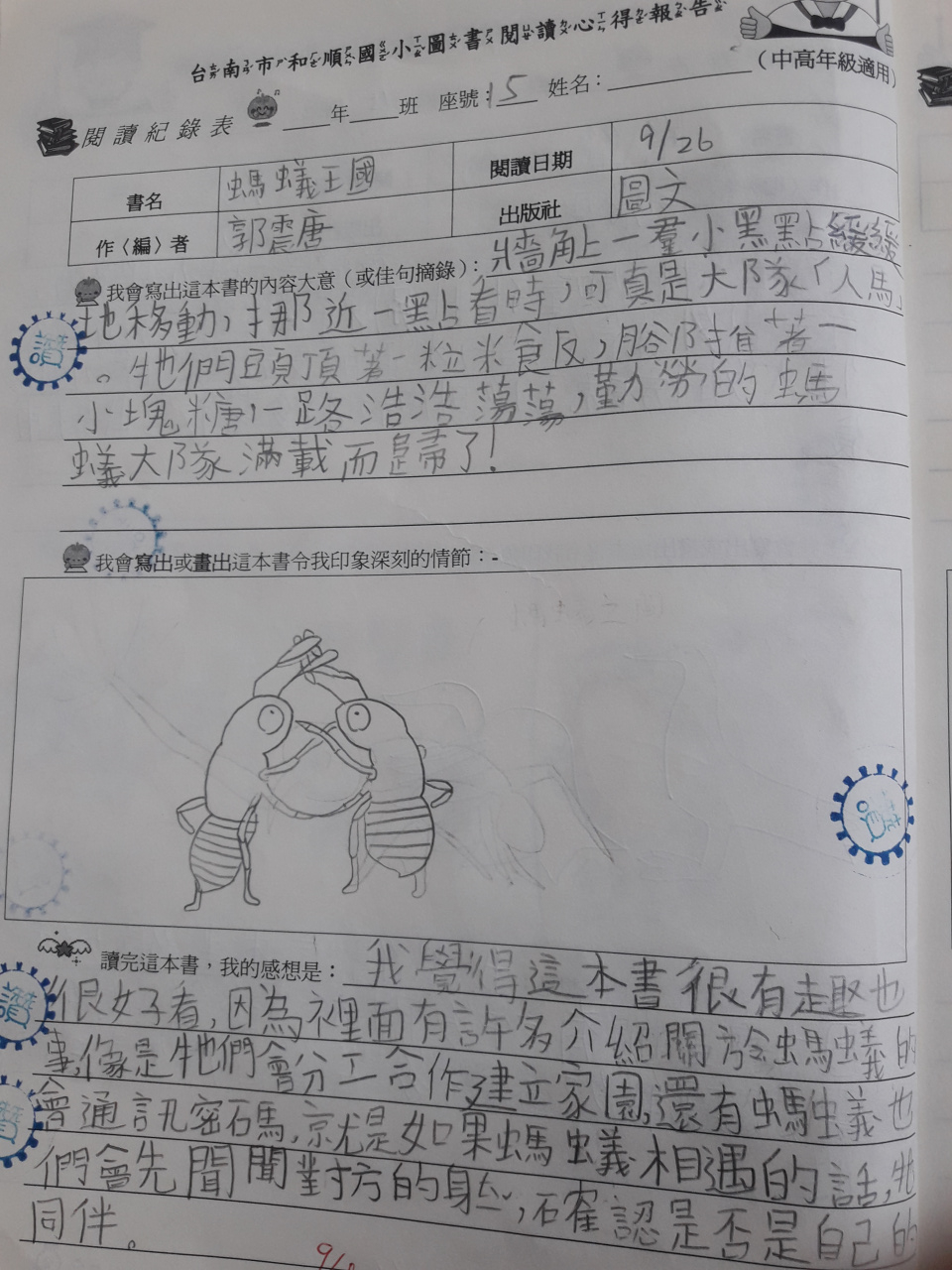 投稿題目:「螞蟻王國」閱讀心得