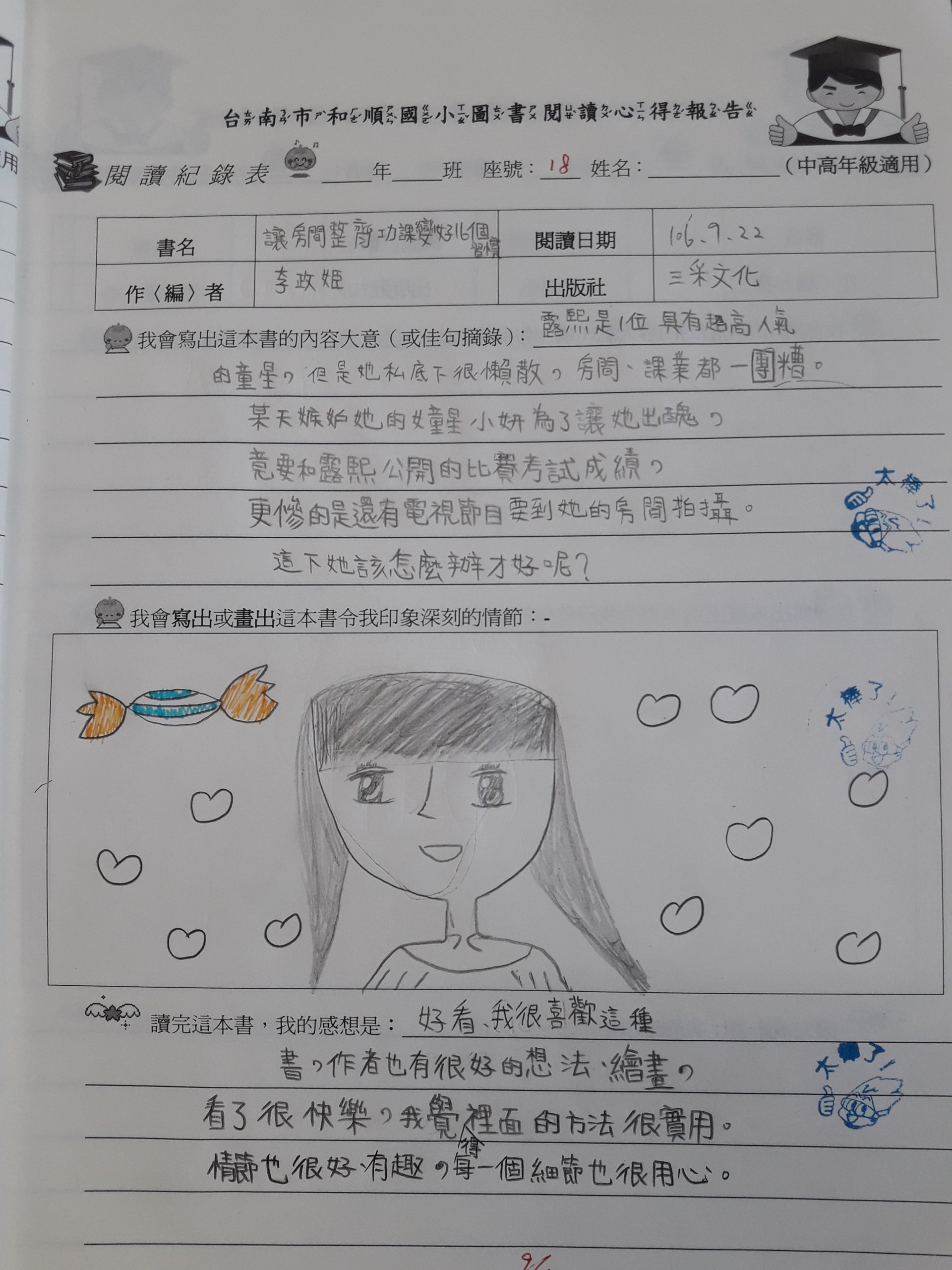 投稿題目:「讓房間整齊功課變好16個習慣」讀後心得