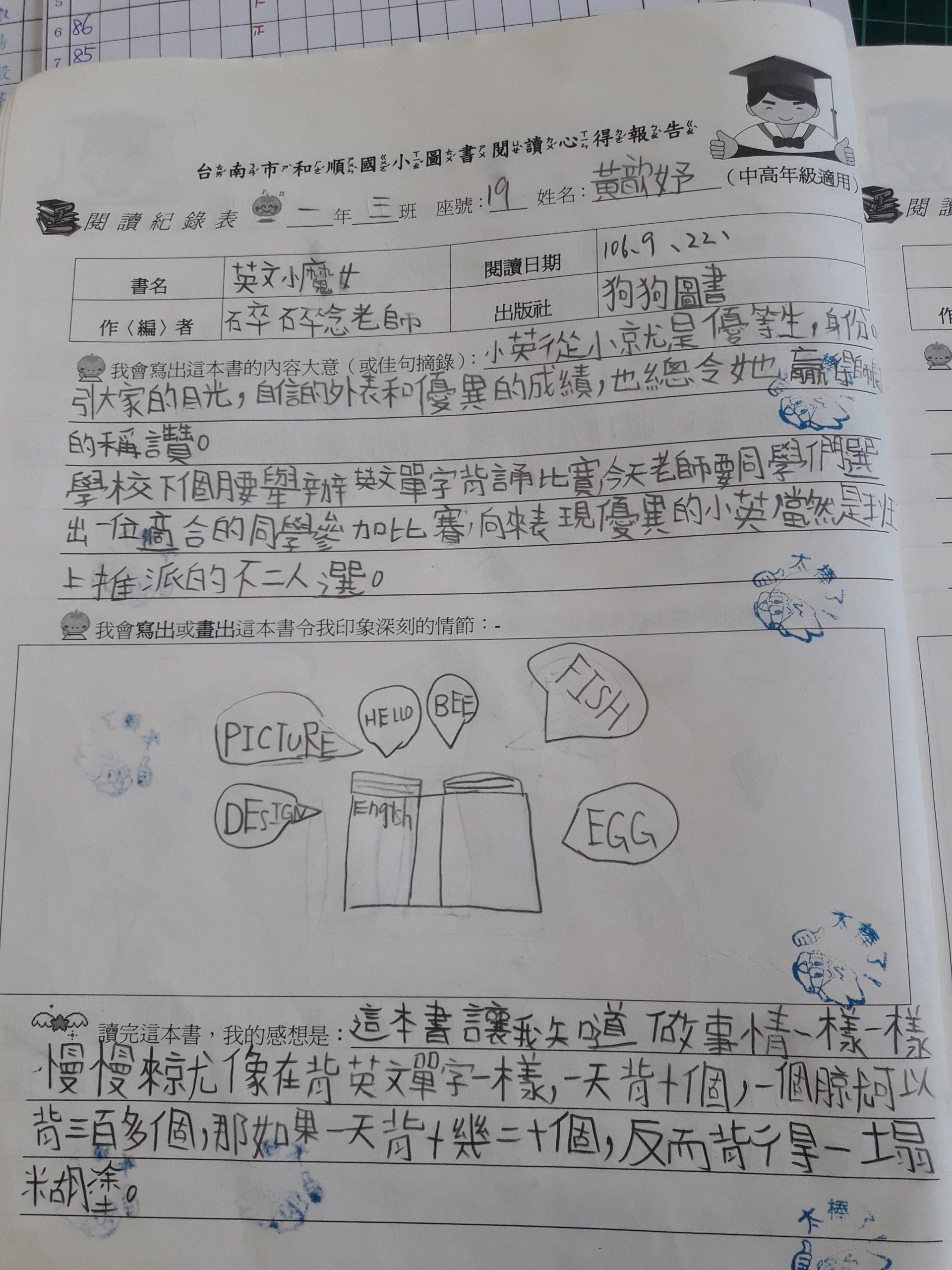 投稿題目:「英文小魔女」讀後心得
