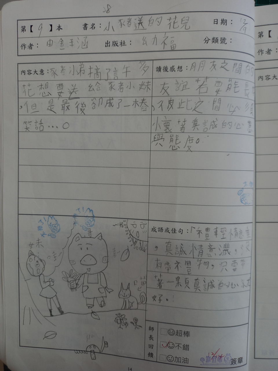 投稿題目:閱讀單-小豬送的花兒