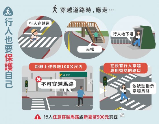 (七)行人行走行穿線、不任意穿越車道、闖紅燈。