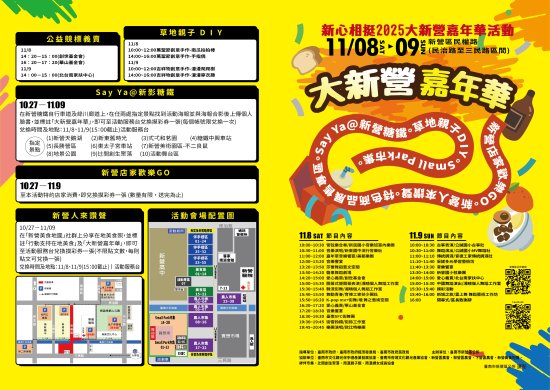 🌟 SayYa@新營糖鐵~在任兩處指定景點找到活動海報並與海報合影後上傳個人臉書,標註「大新營嘉年華」,即可至活動服務台兌換摸彩券一張!