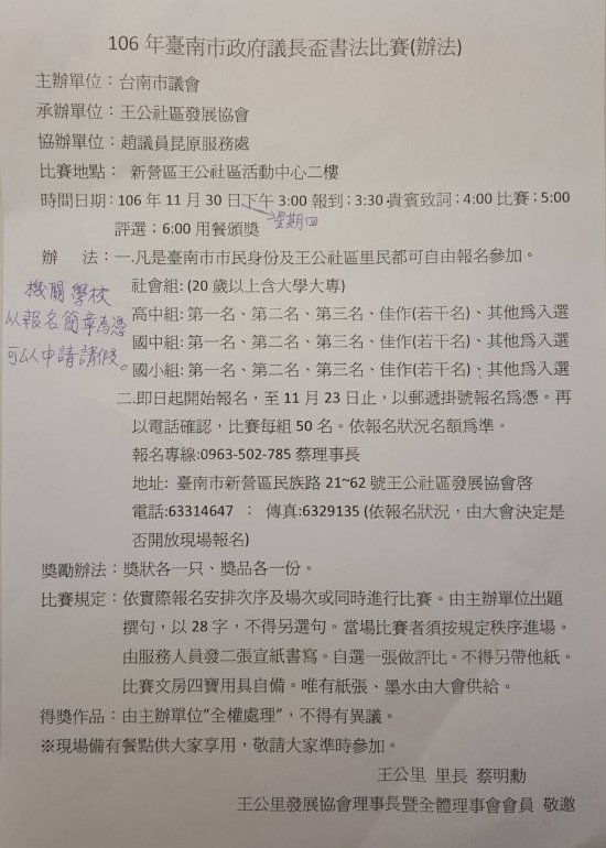 比賽時間: 106 年 11 月 30 日下午 3 點報到