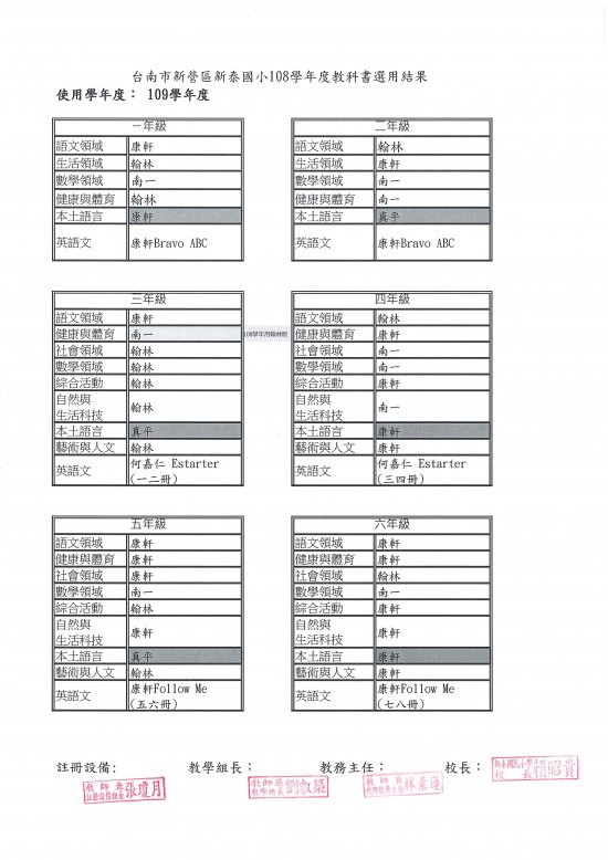 109學年度教科書選用結果
