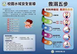 6. 體育署製作「救溺特攻隊」、「決定命運4招」、「新版防溺10招」、「自救救人-溪河流篇」等水域安全宣導短片與「救溺5步、防溺10招」海報檔案,請至https://www.space.ntu.edu.tw/navigate/a/#/s/22A28B87C2BC4205AF7B43A1117174596BL下載參閱。