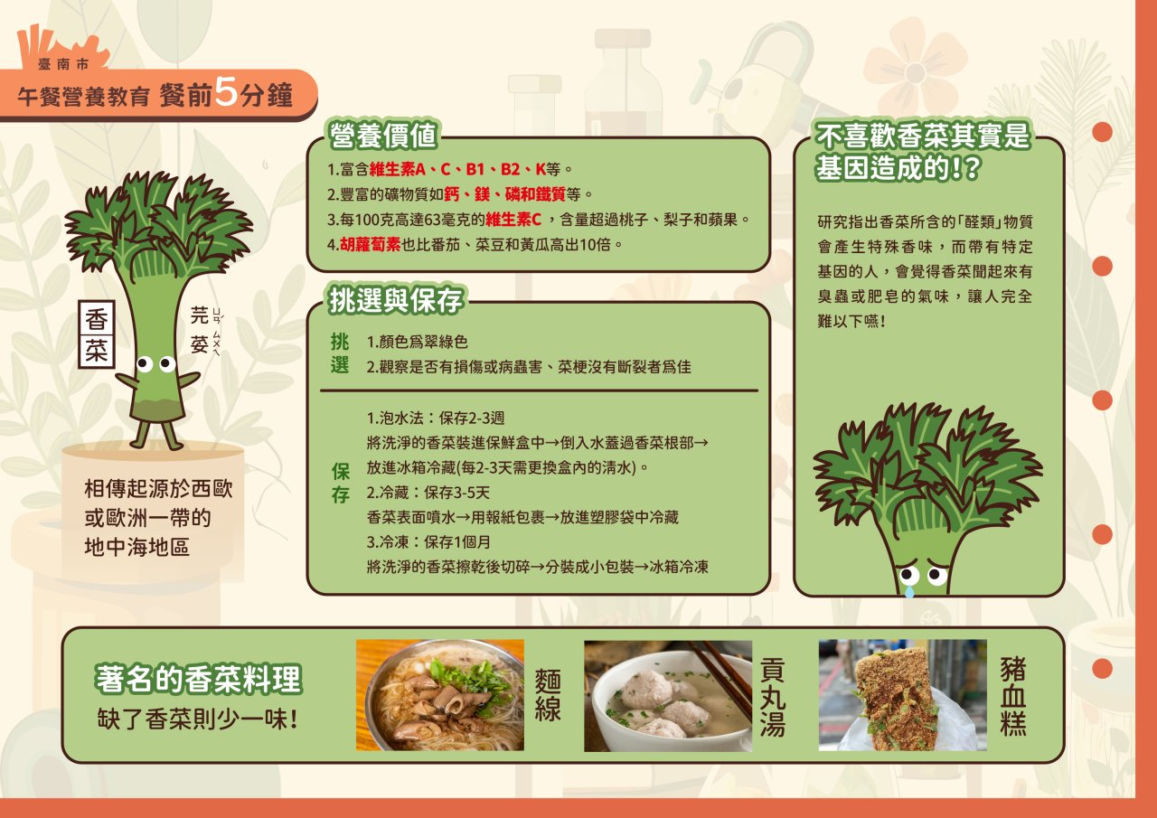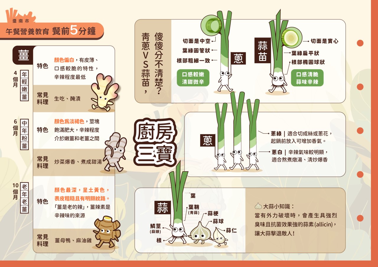 1.認識生長過程、產地 2.食物特性與挑選 3.營養價值 4.料理與飲食文化 |