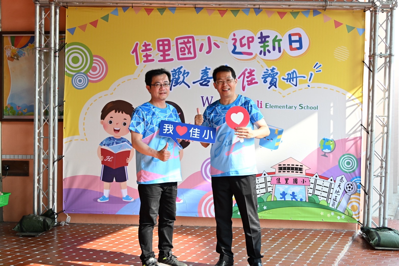在小手玩大球的活動中揭開迎新活動的序幕,學校以特色社團足球隊、躲避球隊的介紹迎領學生們進入佳里國小的學習殿堂。今年小一孩子們換上新式運動服為130週年校慶暖身,小小模特兒牽著祖父母或爸媽的手為大家展示最新運動服,具傳承、性別不設限是此次運動服設計的重點,特別邀請四對祖父母或未來的祖父母們跟孫子、孩子進行佳里國小新式運動服發表會也是為倡導家庭世代互動共學,喚起各界對於親情、孝道及敬老尊賢倫理道德的重視,在8月的第4個星期日「祖父母節」這天更添溫馨。