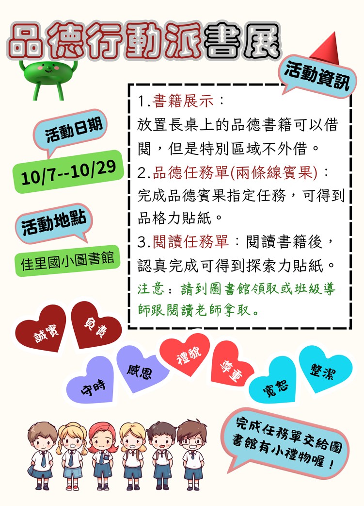 10 月主題書展活動:「品德行動派」