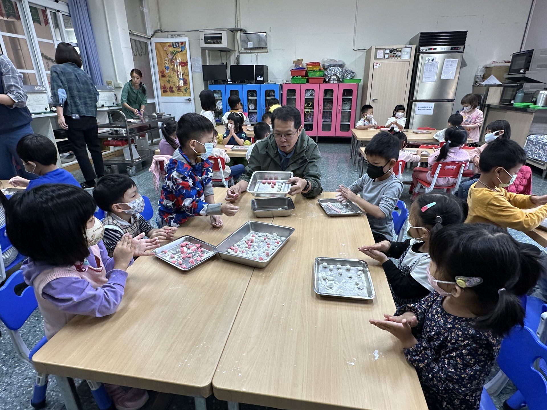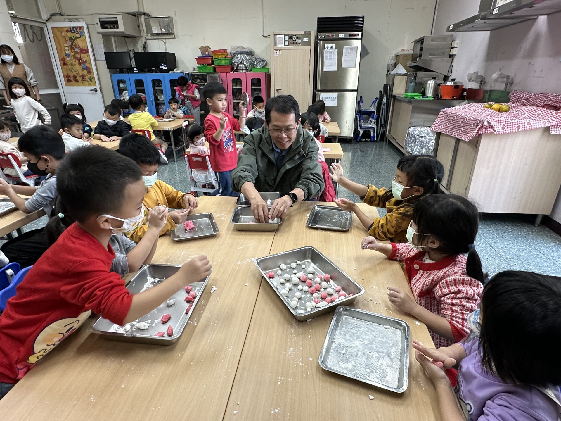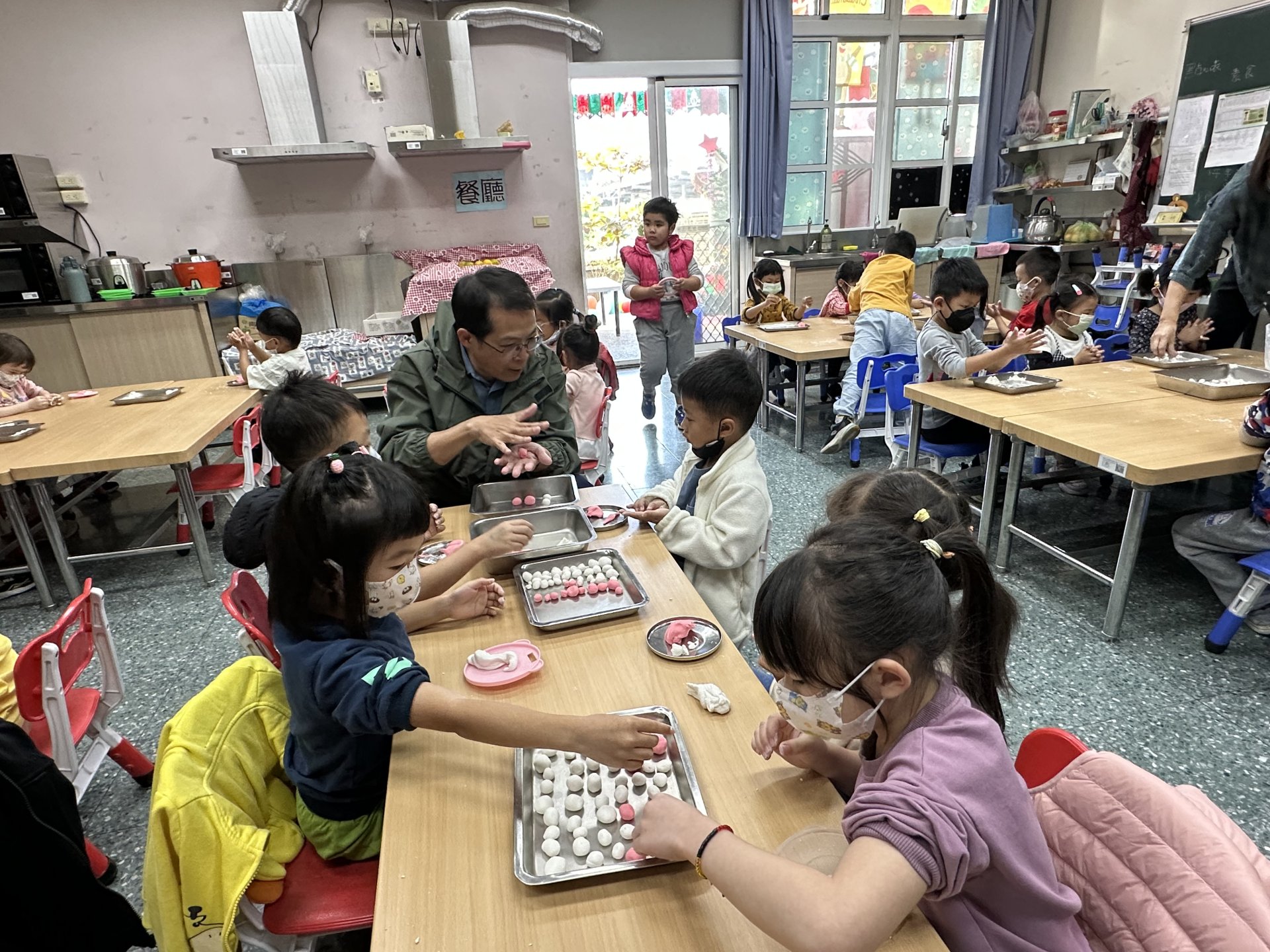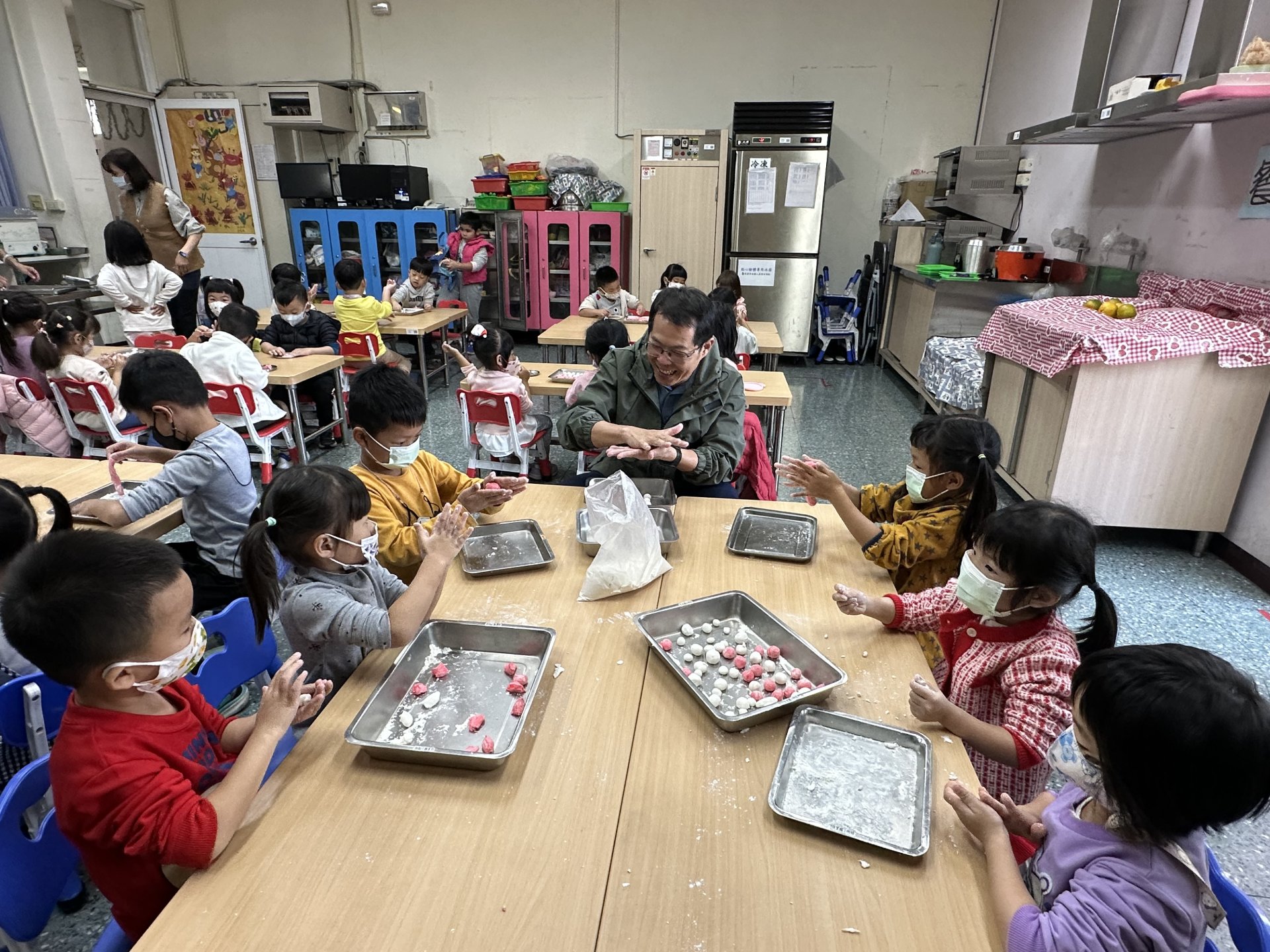 校長也特地到班上,和孩子們一起動手搓湯圓,場面溫馨又歡樂。祐貽還可愛地模仿校長,用掌心輕輕搓出一顆顆圓滾滾的湯圓,讓大家看了都忍不住微笑 😊