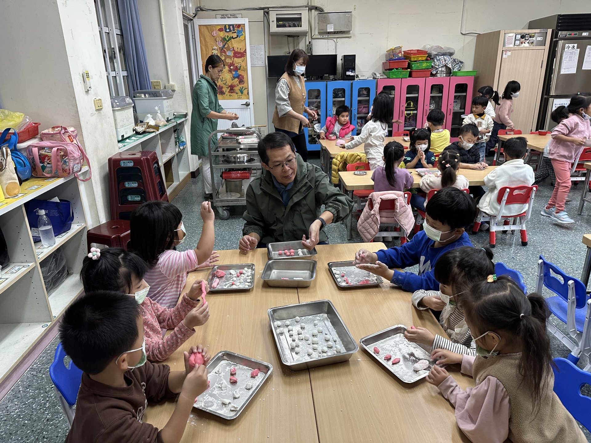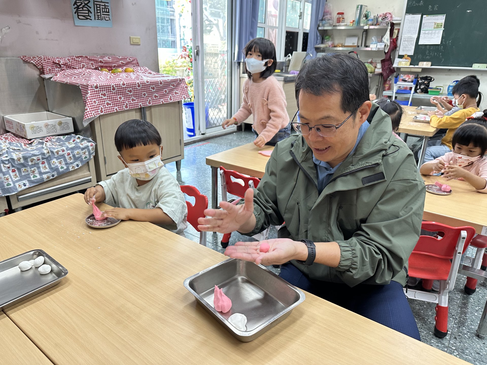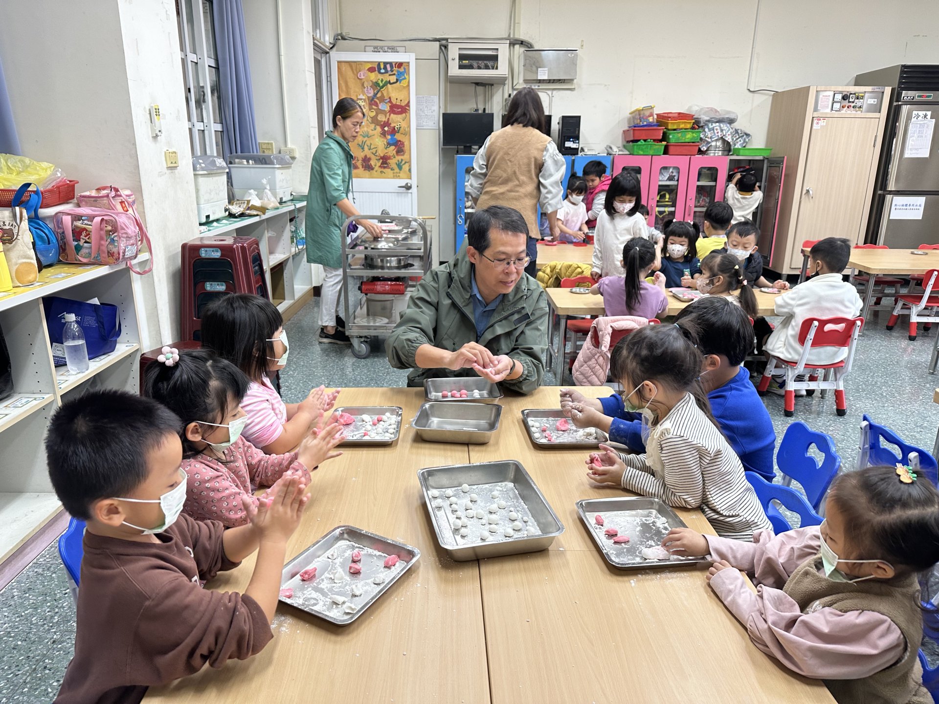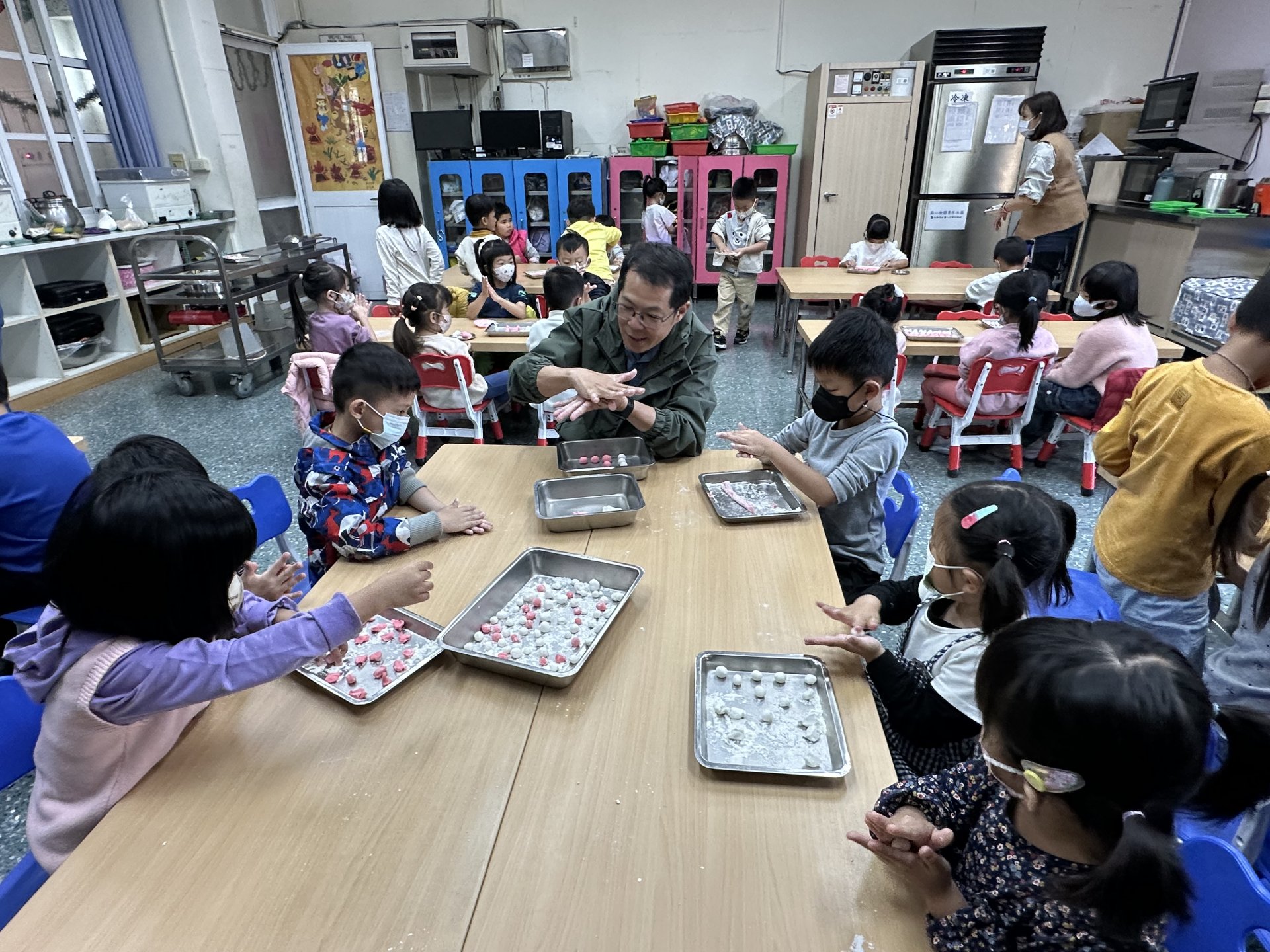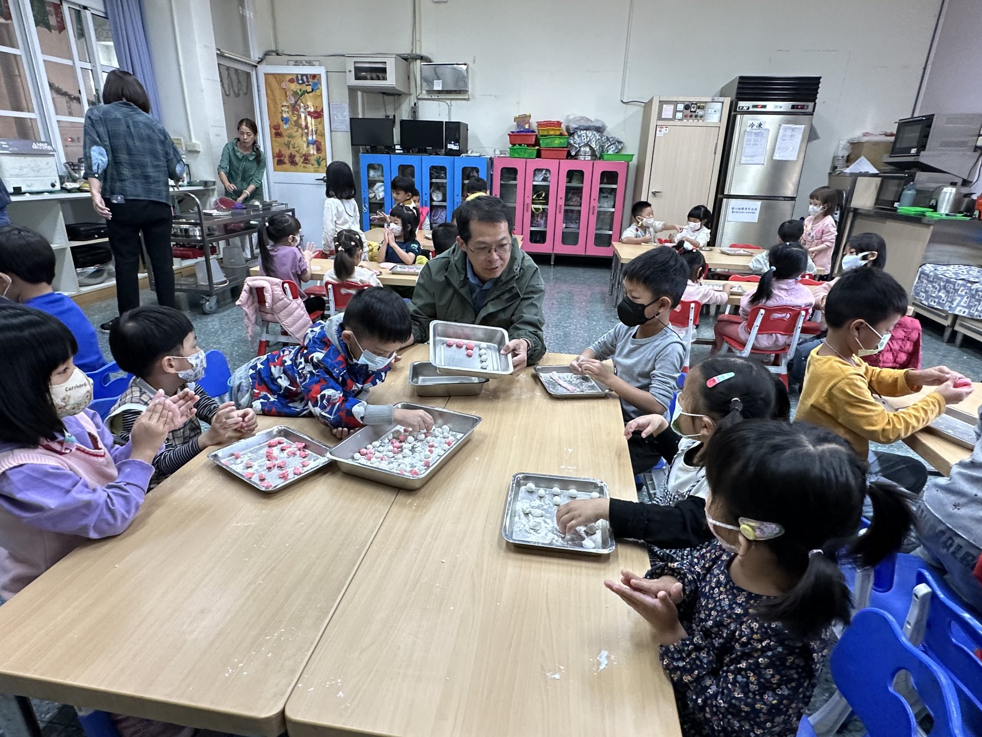 校長也特地到班上,和孩子們一起動手搓湯圓,場面溫馨又歡樂。祐貽還可愛地模仿校長,用掌心輕輕搓出一顆顆圓滾滾的湯圓,讓大家看了都忍不住微笑 😊