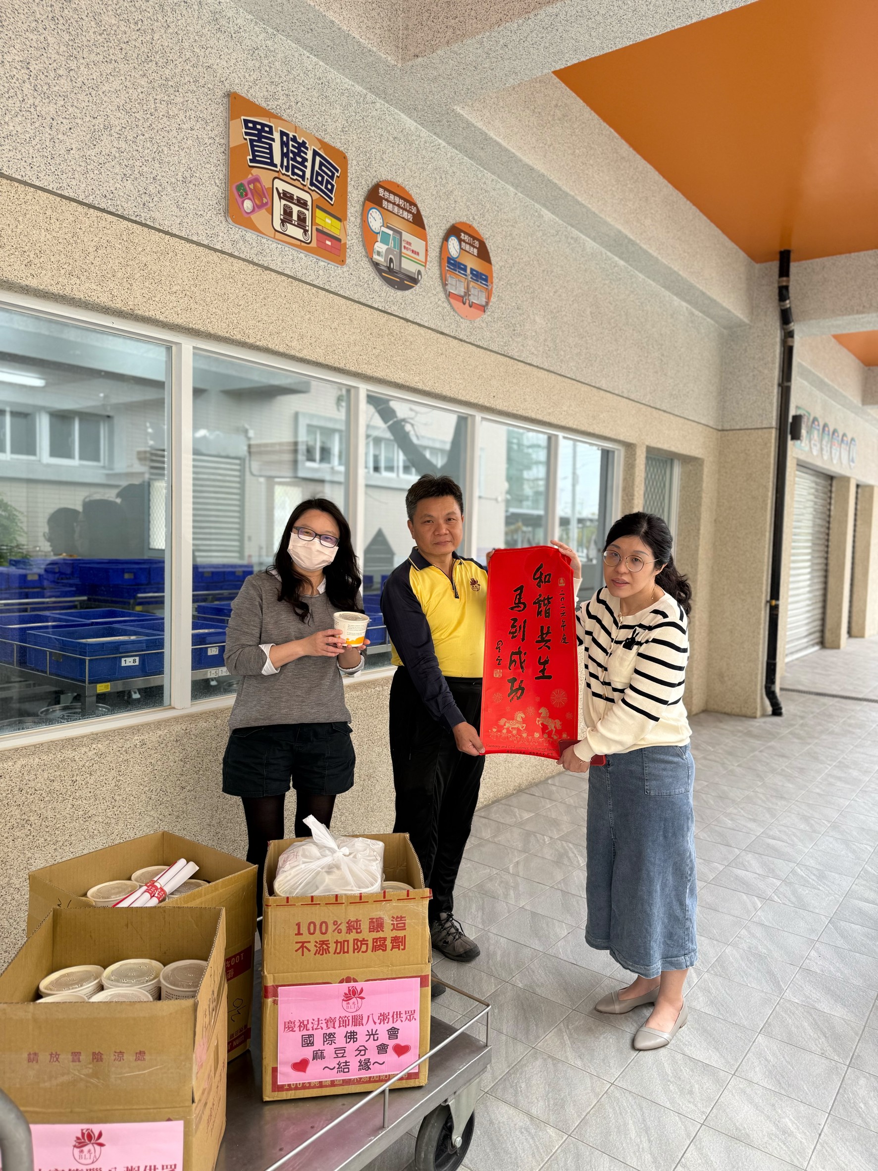 佛光山麻豆分會依循每年傳統,於今日贈送本校共 110 碗熱騰騰的臘八粥,由校方師生代表接受。這份暖心禮品已細心分裝,每班可分得兩碗,讓學童在校內共同品嘗,不僅暖胃,更寓意分享與祝福。