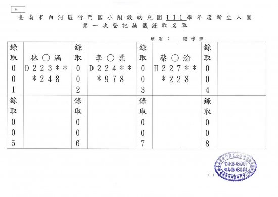 於彈跳視窗觀看:111學年度新生入園第一登錄取.jpg