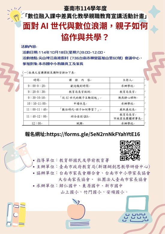 (三)參加對象:本市國中小教職員工及家長。