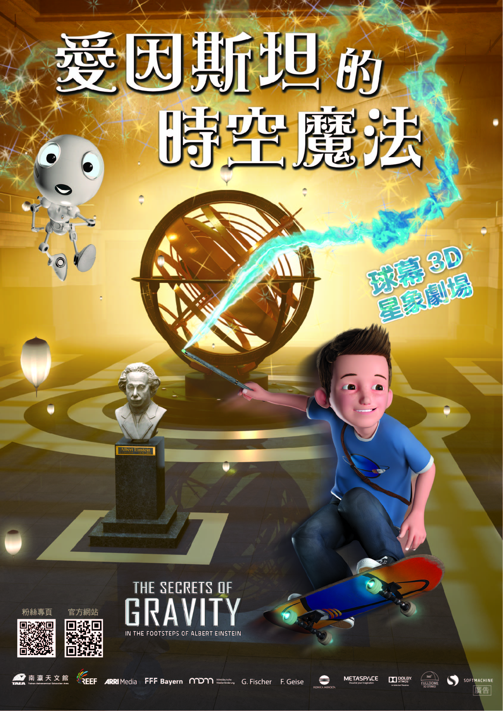 一、南瀛科學教育館星象劇場訂於 106 年 12 月 24 日(日)起,正式播映新 3D 球幕影片─「愛因斯坦的時空魔法( The Secrets of Gravity )」,敬邀大眾共同觀賞。本片透過魔法師學徒哈利與小機器人艾爾比的對話、具體及簡易的重力模擬展示,精彩呈現出有關愛因斯坦對於相對論的見解,富具科學教育意涵。