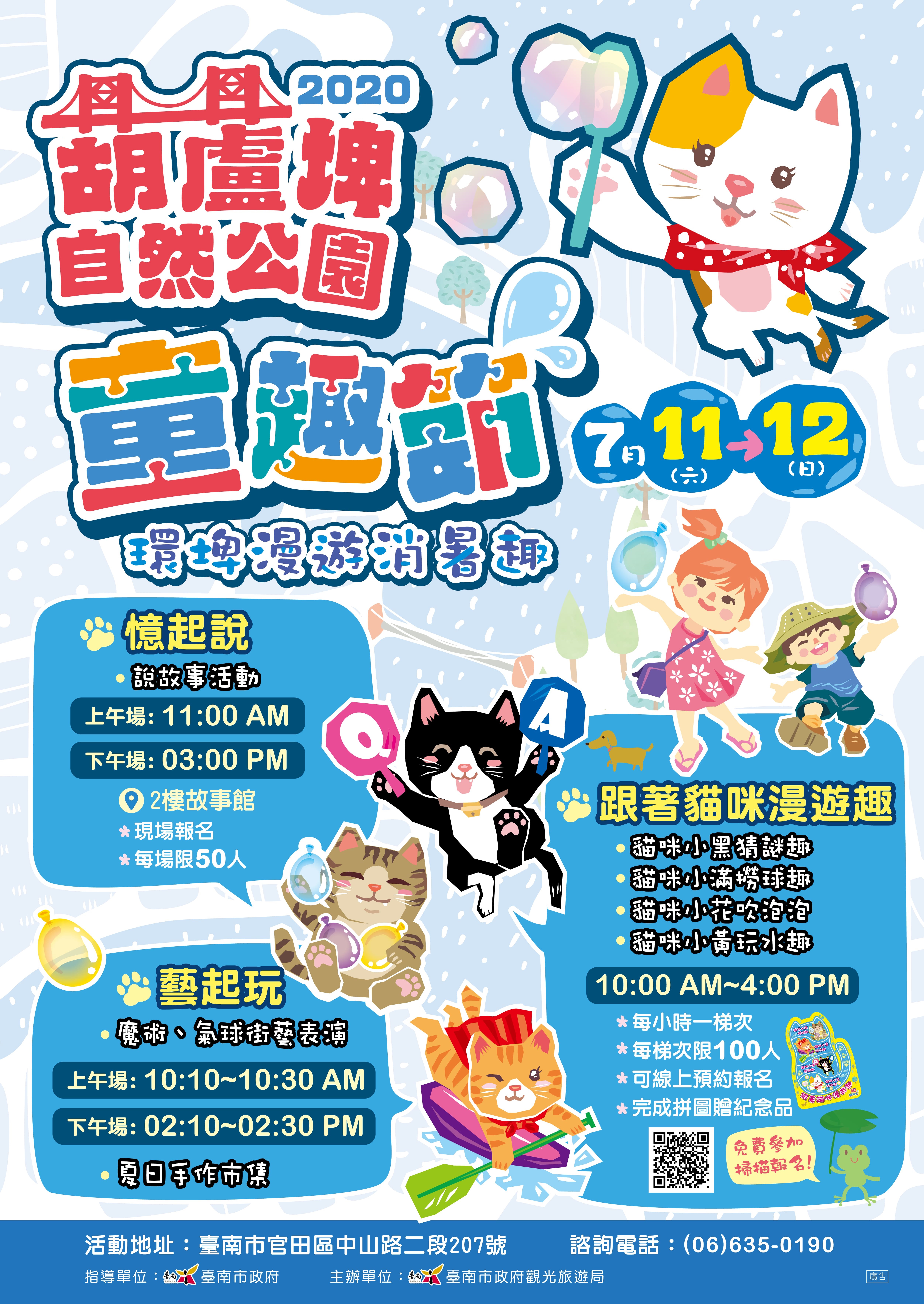 檢送本局「2020葫蘆埤自然公園童趣節」活動宣傳海報, 請貴單位惠予協助宣傳周知,俾利活動圓滿舉行,請查 照。