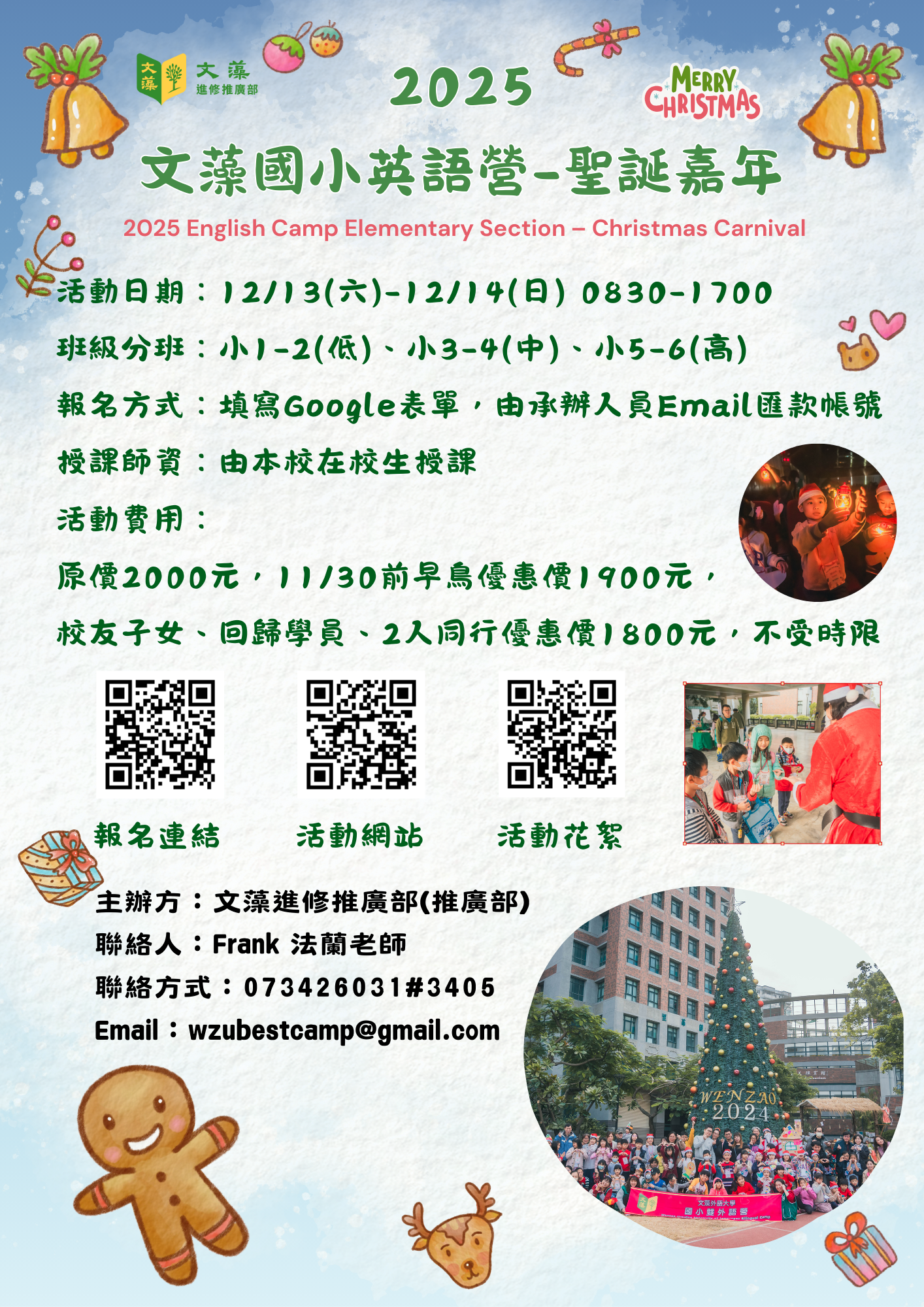 五、詳情可上本校進修推廣部網頁查詢: https://dee.wzu.edu.tw/Course/3899 ,或洽專線(07)3458212 。