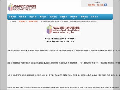 青少兒上網時間長 兒少法定「合理時間」 iWIN熱線02-33931885 貼近孩子的心
