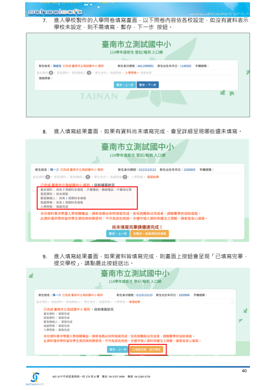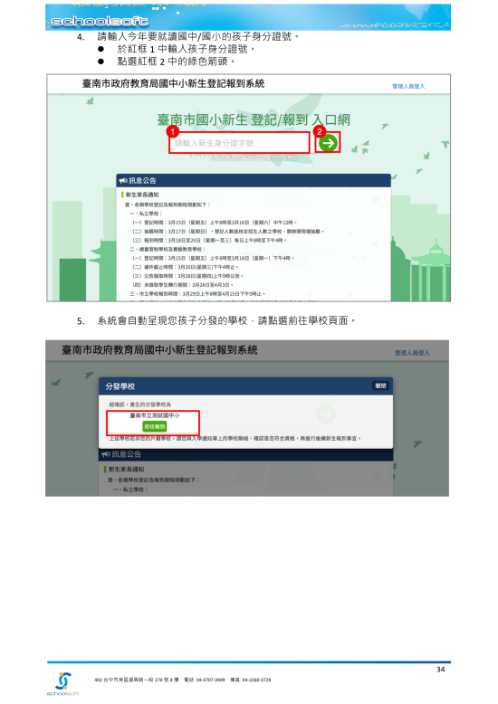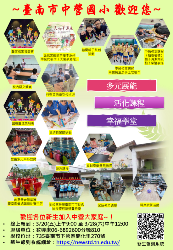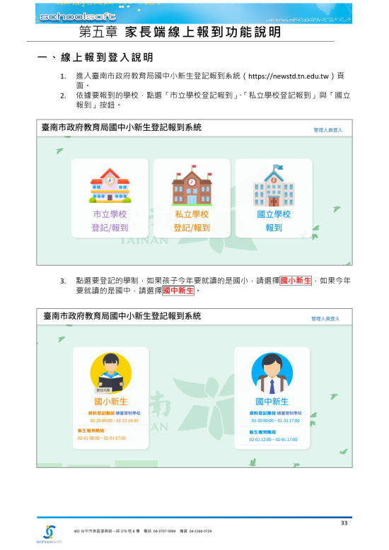 推薦家長直接至「臺南市政府教育局國中小新生登記報到系統」填寫報到相關資料,方便又省時!