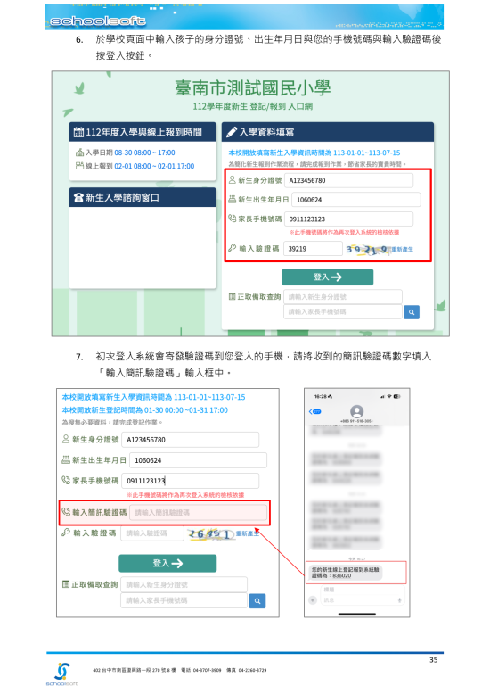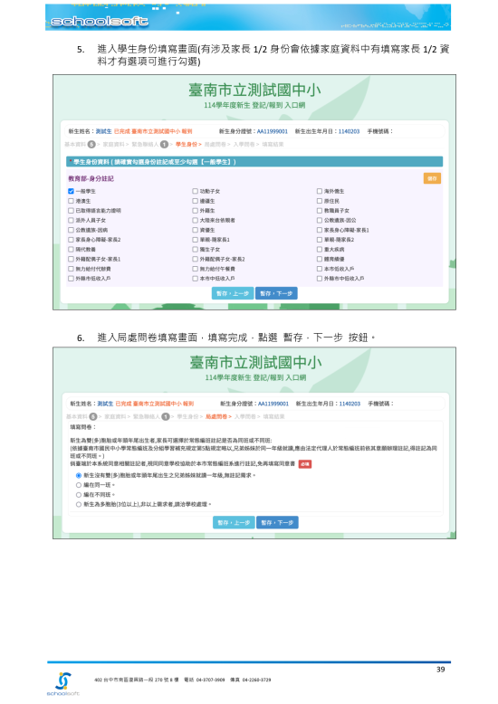(3) 戶口名簿等有「身分證字號」之證明文件(需由學校先將學生加入本校學生名冊,再由家長進行線上報到資料之填寫。)