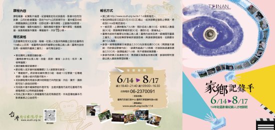 本府辦理「114年社區影像紀錄人才培訓班」活動,請貴校(中心、館)協助刊登報名訊息於轄管電子螢幕(如LED跑馬燈等)及官網等網路平臺以利宣傳,請查照。