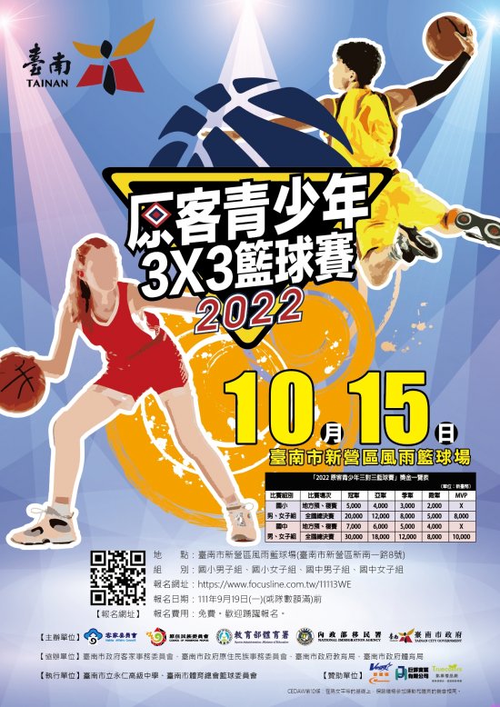 主旨:檢送 2022「原客青少年 3X3 籃球賽」臺南場海報電子檔(如附件),請協助於網站、跑馬燈及電子看板等管道宣傳周知,並鼓勵所屬國中小學生踴躍報名參加,請查照。