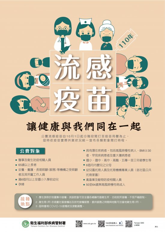 五、檢附 110 年流感疫苗接種宣導海報圖檔 1 份(如附件)。