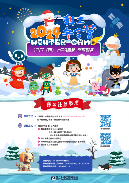 主旨:檢送本館「2024 科工冬令營」系列活動電子海報,請惠予協助宣傳,至紉公誼。