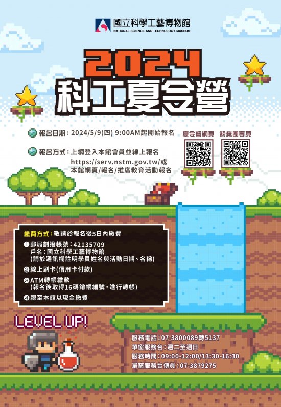 主旨:檢送本館「2024 科工夏令營」系列活動電子海報,請惠予協助宣傳,請查照。