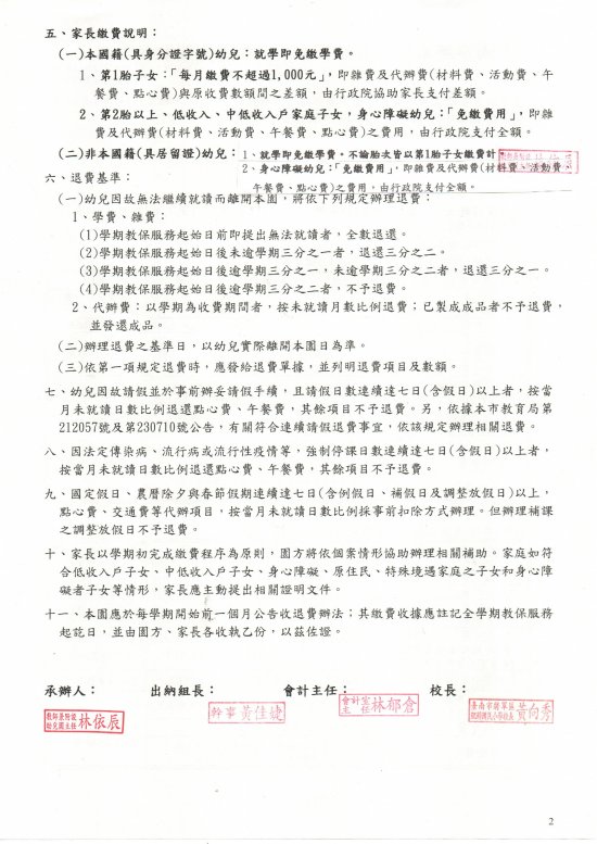 依據「臺南市教保服務機構收退費辦法」辦理