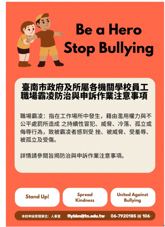 二、本校受理職場霸凌事件專責處理之管道如下: