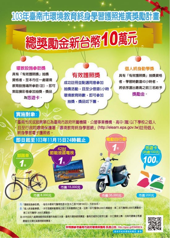 103年臺南市環境教育終身學習護照推廣獎勵計畫