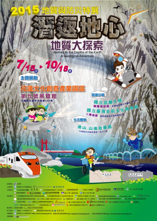 經濟部中央地質調查所自 104 年 7 月 15 日(星期三)至 10 月 18 日(星期日)假花蓮文化創意產業園區舉行為期 3 個月之 2015 地質與防災特展「潛返地心─地質大探索」,並設立「閱讀沙龍」及「生活體驗」展區。