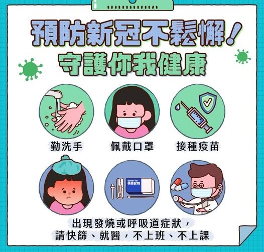 三、若出現咳嗽、發燒、喉嚨痛等呼吸道症狀,請戴口罩儘速就醫,避免延誤治療。