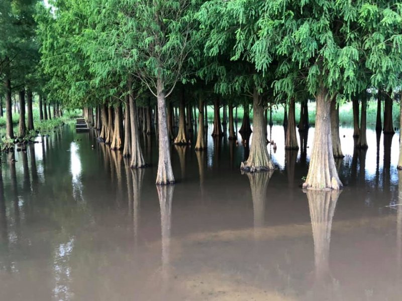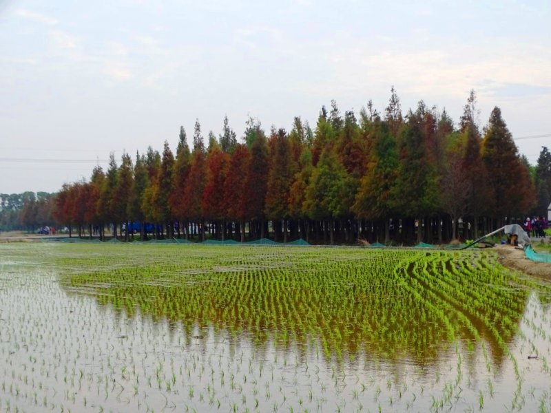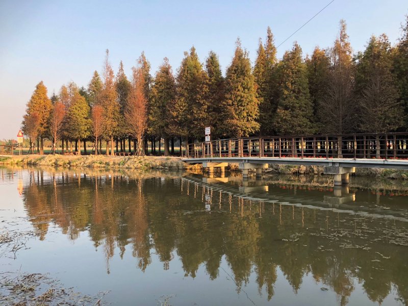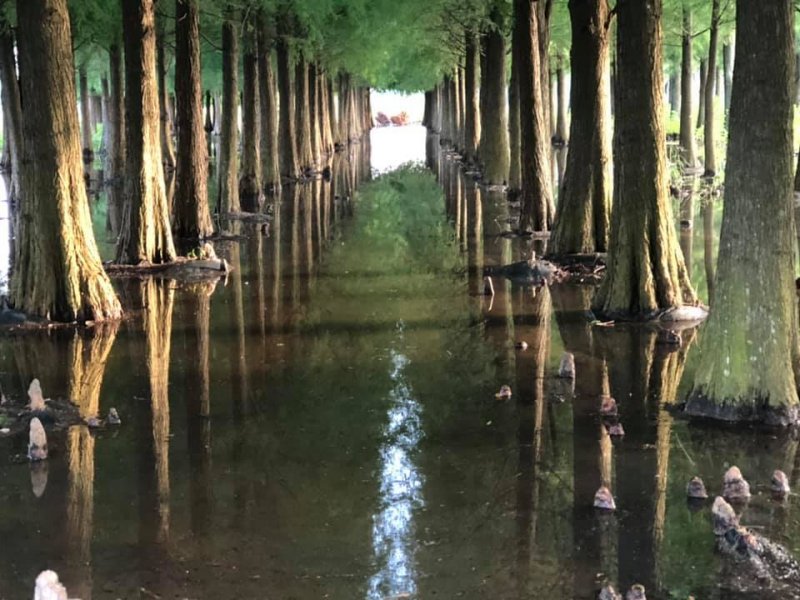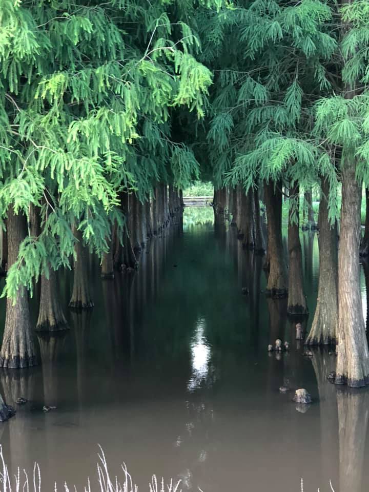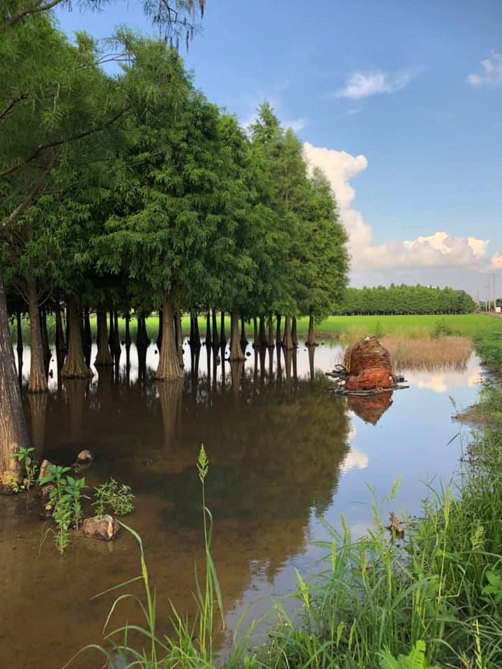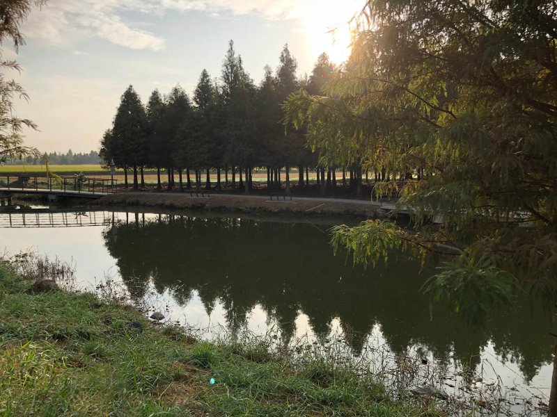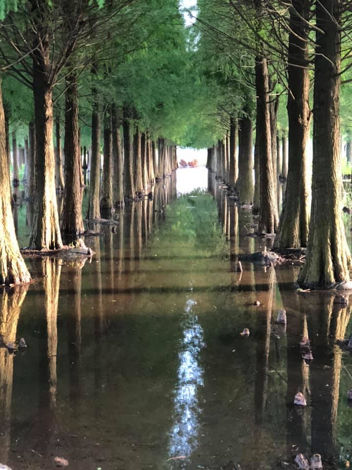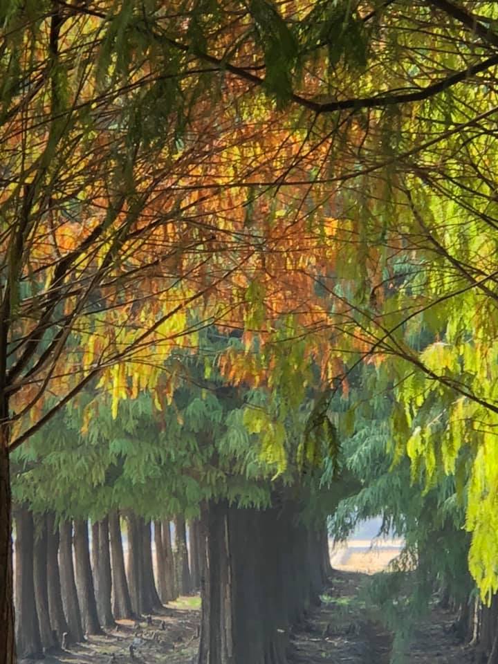 欣賞著菁埔埤的 落羽松