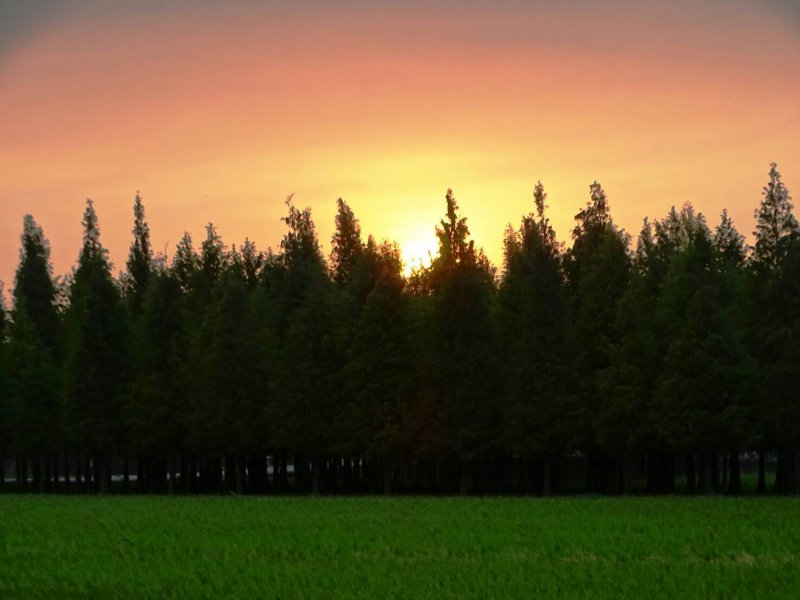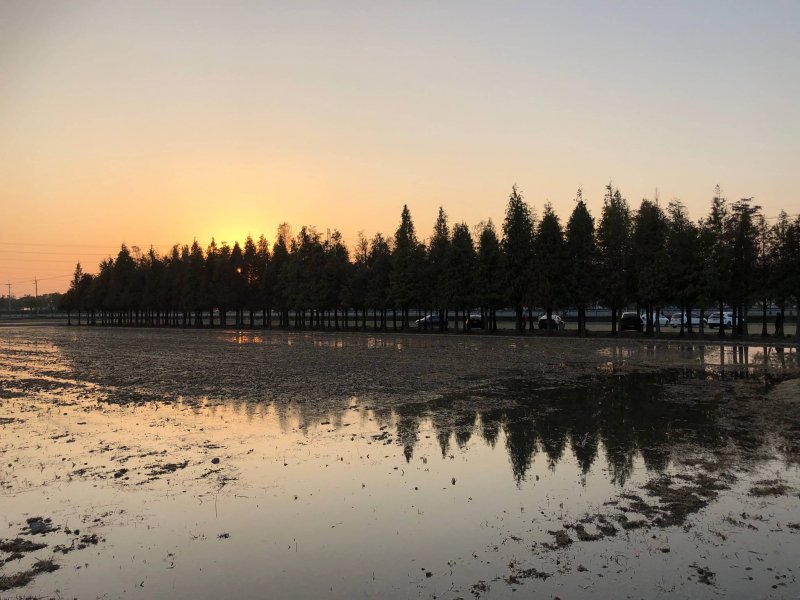 欣賞著菁埔埤的 夕陽