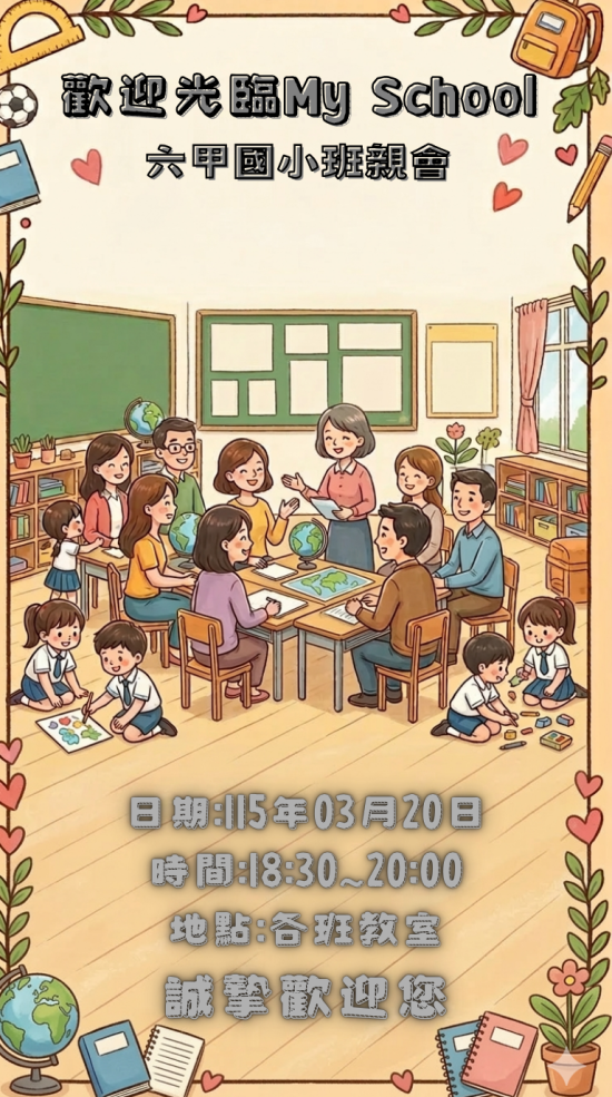 各位家長大家好!👋 新學期已經開始一段時間了,為了讓大家更了解本學期的校務及班級經營規劃、教學重點,以及孩子們在學校的學習狀況,我們即將舉辦「114 學年度第二學期班親會」囉!🤝