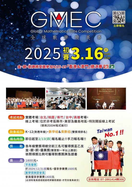 轉知中華數學協會「2025 年全球數學菁英賽初賽(Global Mathematics Elite Competition,簡稱GMEC)」