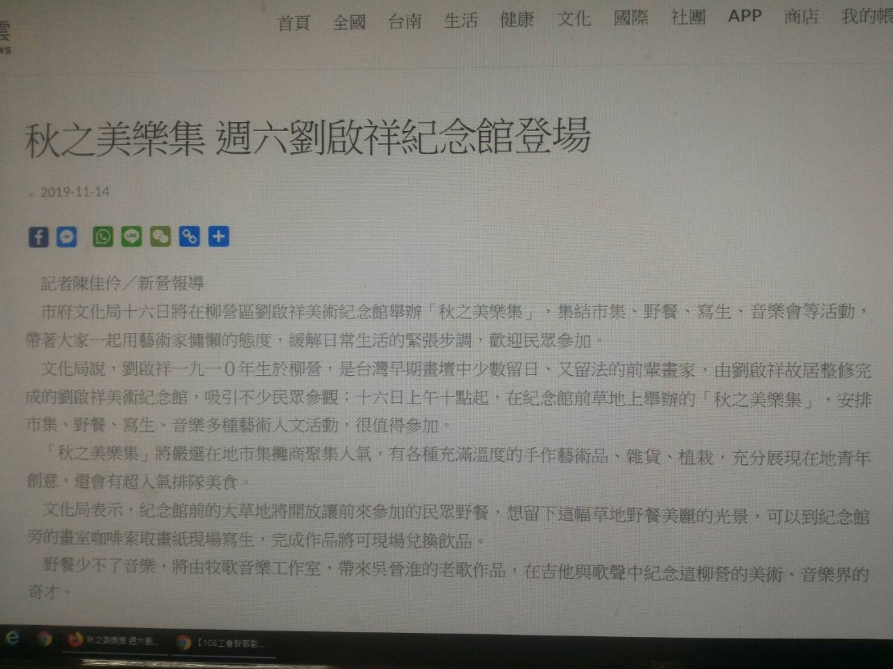 108/11/16 星期六上午 10 點文化局於柳營劉啟祥美術紀念館舉行「秋之美樂集」活動