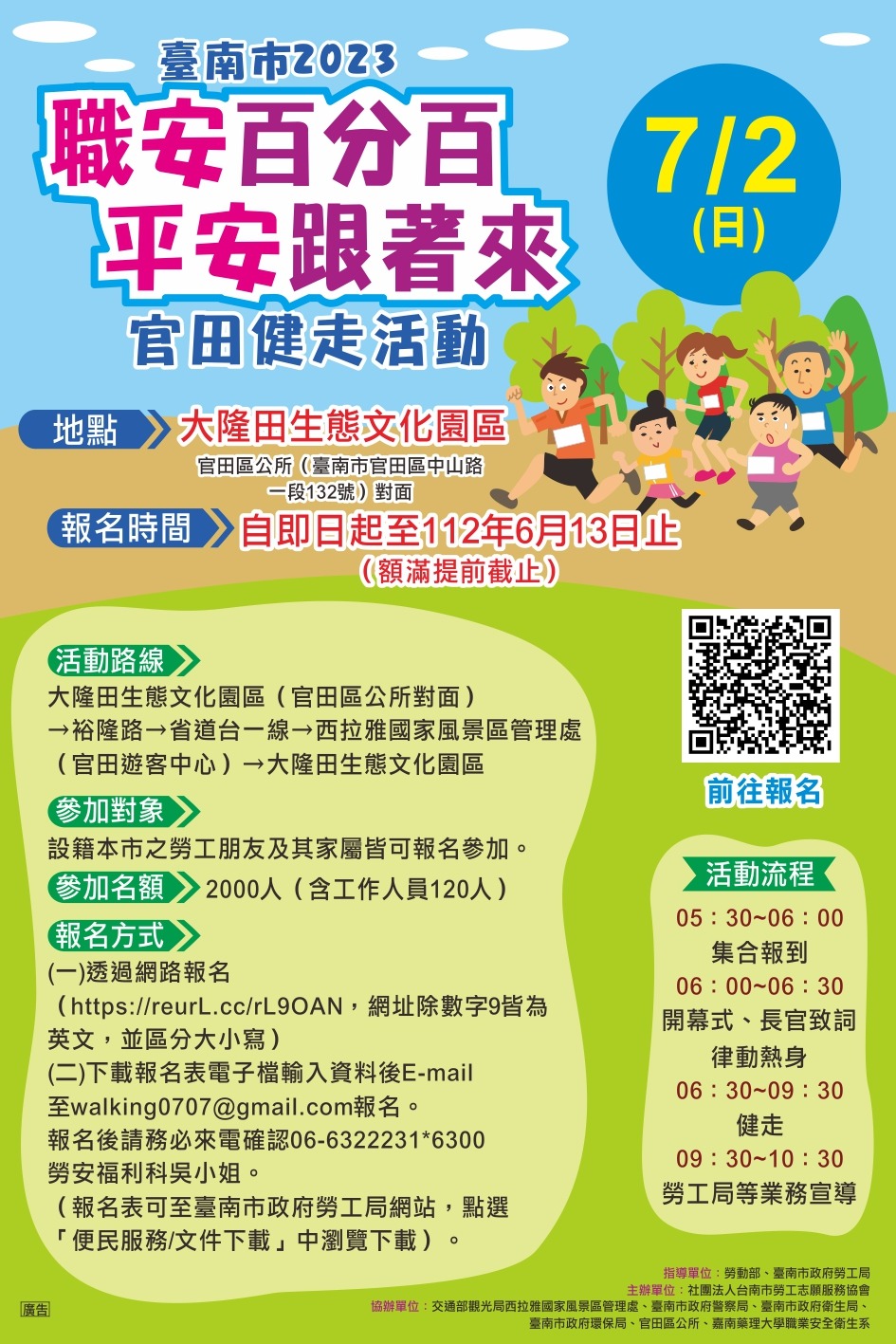 2023「職安百分百、平安跟著來」官田健走活動實施計畫及健走路線圖各 1 份