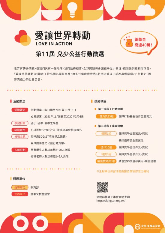 二、「愛讓世界轉動 兒少公益行動」徵選資訊