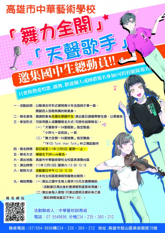 四、本案聯絡人:中華藝校訓育組(電話: 07-5549696 分機