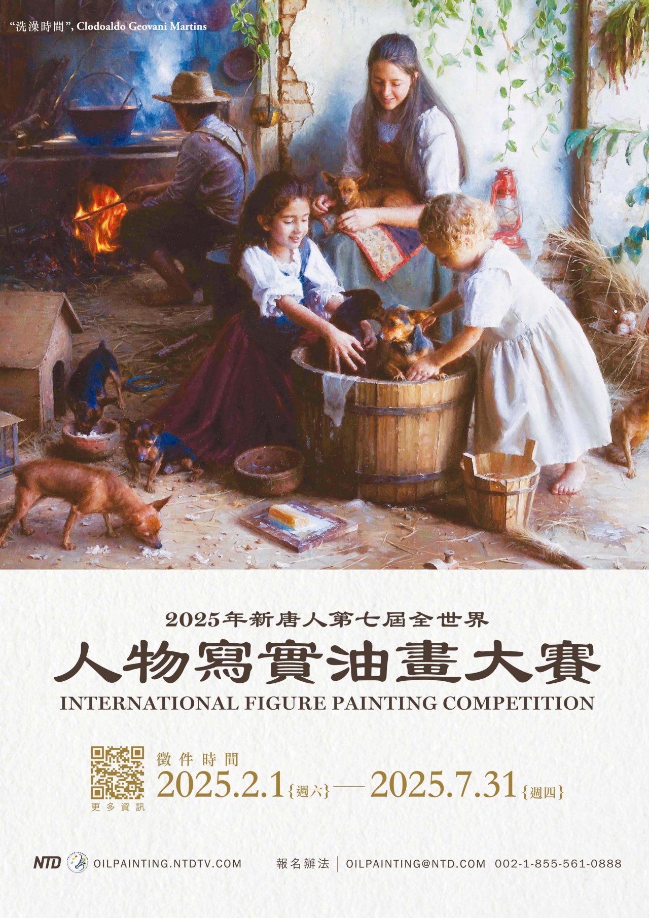 一、「全世界人物寫實油畫大賽」是新唐人電視台主辦的國際文化藝術比賽系列賽事之一,是全世界藝術家展示才華、恢復傳統寫實油畫藝術的平台。大賽要求參賽畫家以純真、純善、純美為宗旨,以正統的學院派寫實技法,創作出表現光明、正義、善良、美好等具有傳統價值的人物油畫作品。 「新唐人國際攝影大賽」是新唐人電視台舉辦的一系列國際藝術與文化活動之一。這項賽事旨在促進全球攝影愛好者之間的文化與藝術交流,弘揚傳統價值與美感,激發積極向上的攝影創作。大賽透過展現善意、美好、光明與自然狀態,致力於復興傳統美學原則,同時傳承文化遺產,為攝影師提供一個全球性的優秀平台,展示才華並與更廣泛的觀眾分享他們的視覺作品。
