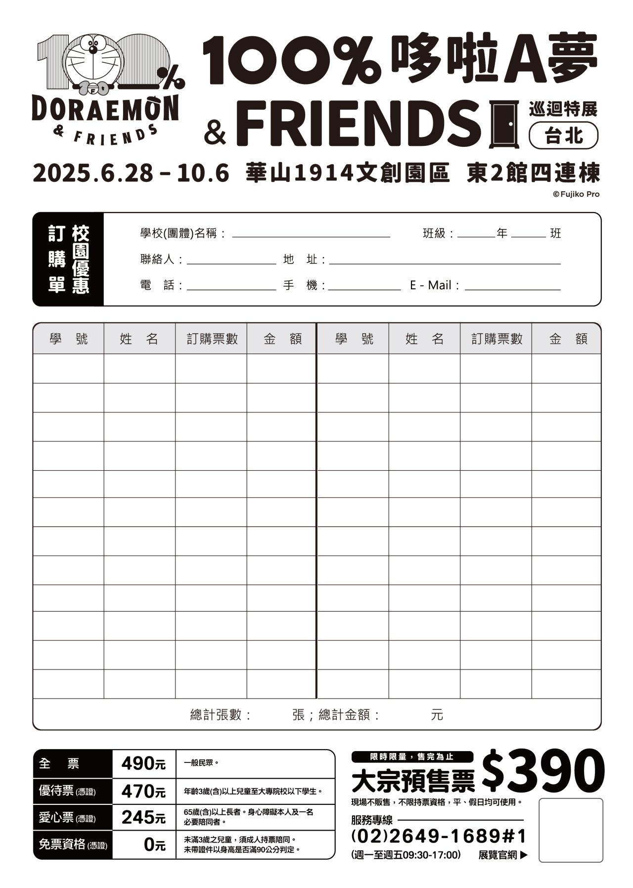 一、《 100%哆啦 A 夢&FRIENDS 》全球巡迴展今夏登台!深受大小朋友喜愛的哆啦 A 夢與他的好友們再次齊聚於台北,這次更帶著特別祕密道具─「100%朋友召喚鈴」,邀請各位朋友們一同玩樂,現場將展出眾多造型立體雕塑、複製原畫手稿以及多種沉浸式場景,還將重現藤子・F・不二雄老師的工作室,以及各種充滿無限想像力的神奇道具,帶領大家與哆啦 A 夢共同來創造許多美好回憶。