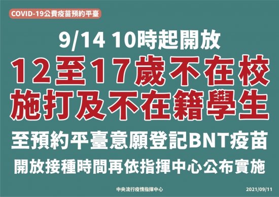 歲不在校施打之學生意願登記 BNT
